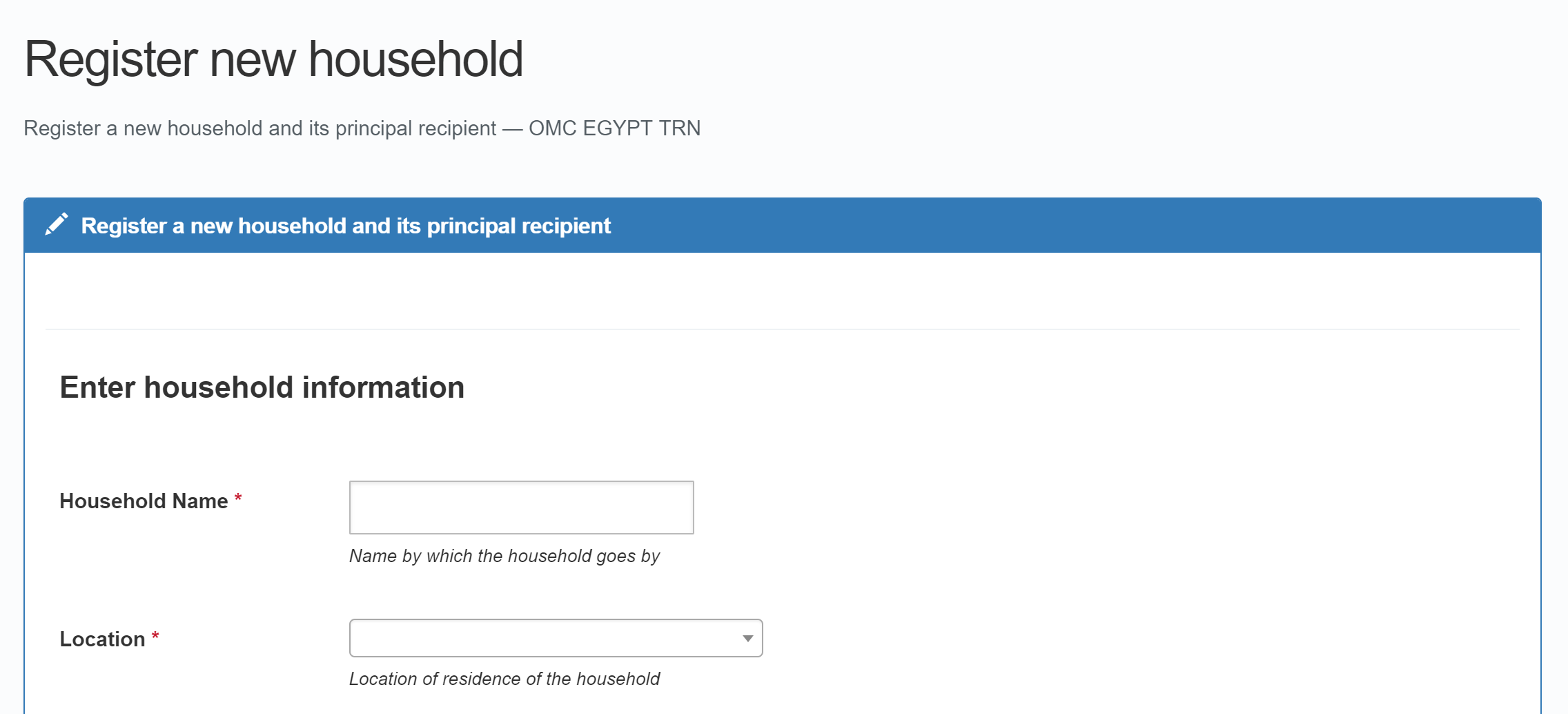 Programme is normally responsible for registering households online. Check with your Country Office to confirm who in Programme is responsible in your country.