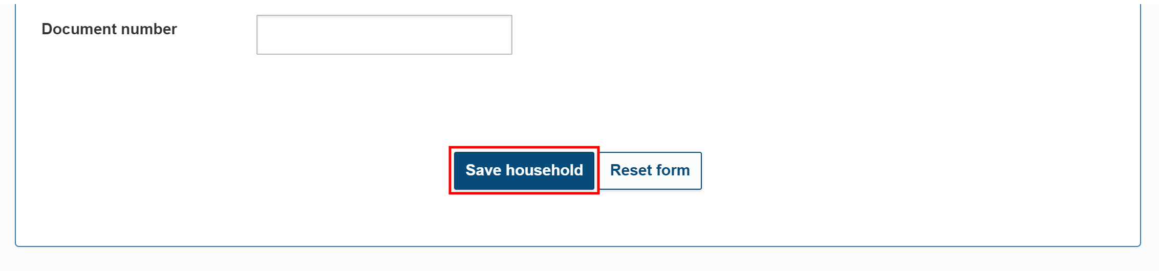 Check that the information entered is correct and click . The household information is saved and you will be returned to the Register new household page to continue registering new households.