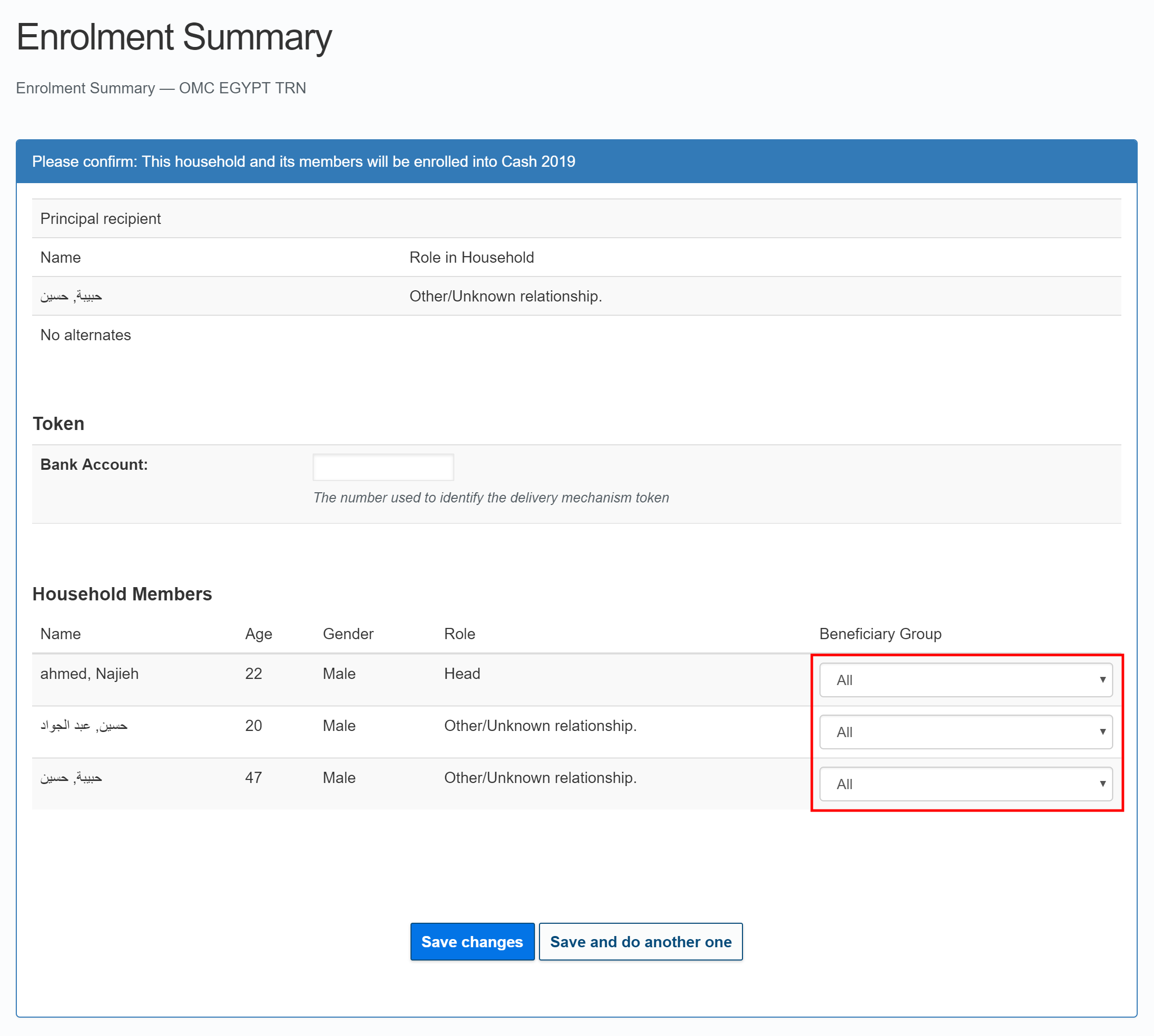 Household Members. Choose which members of the household are beneficiaries of the intervention by selecting which beneficiary group they belong to. If they are not beneficiaries of this intervention, select 'not a beneficiary'.