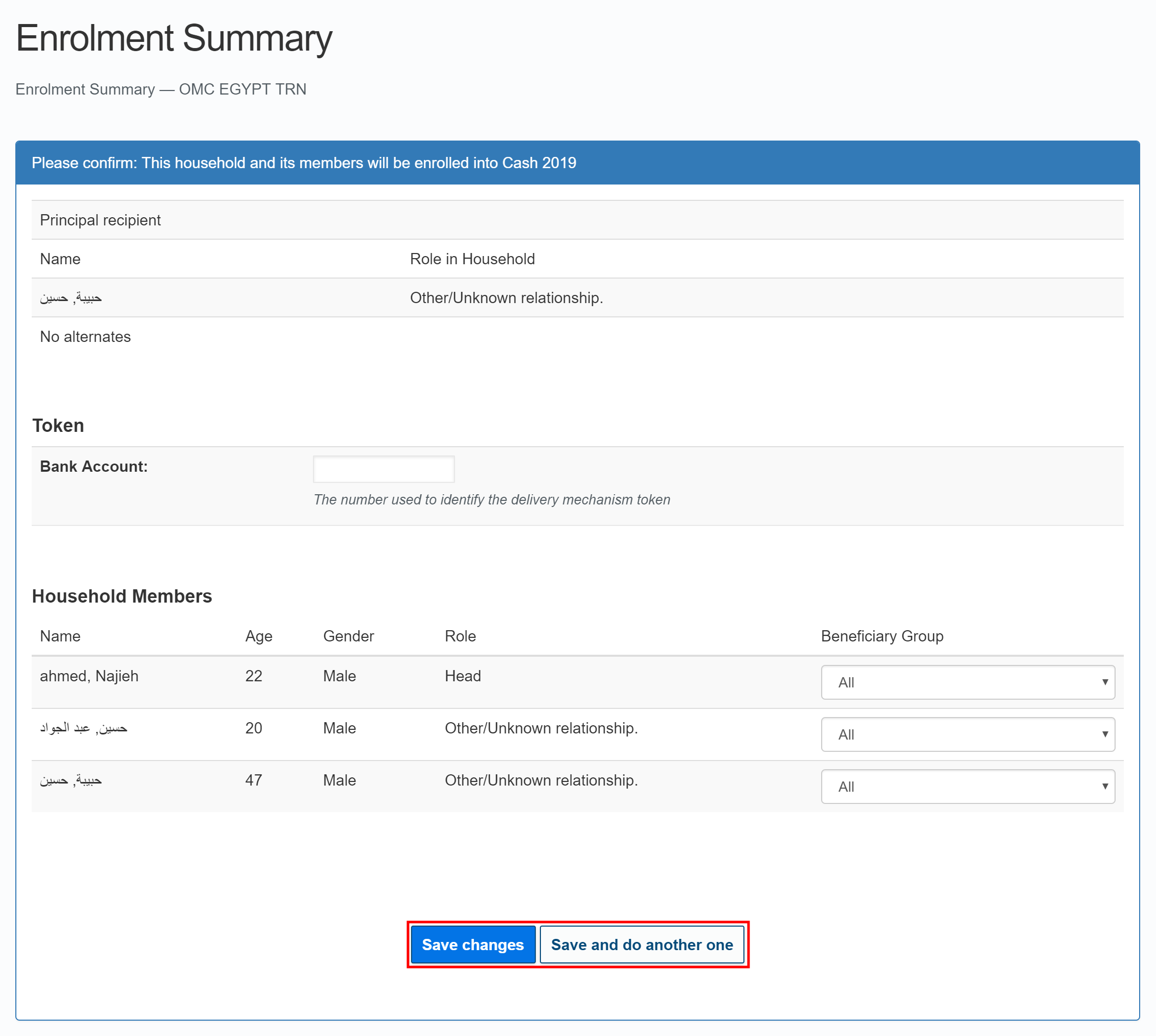 - Click to enrol the household and return to the Enrol Households page to enrol another household. Note that if you are enrolling multiple households, it is recommended that you use Bulk Enrol Members instead.