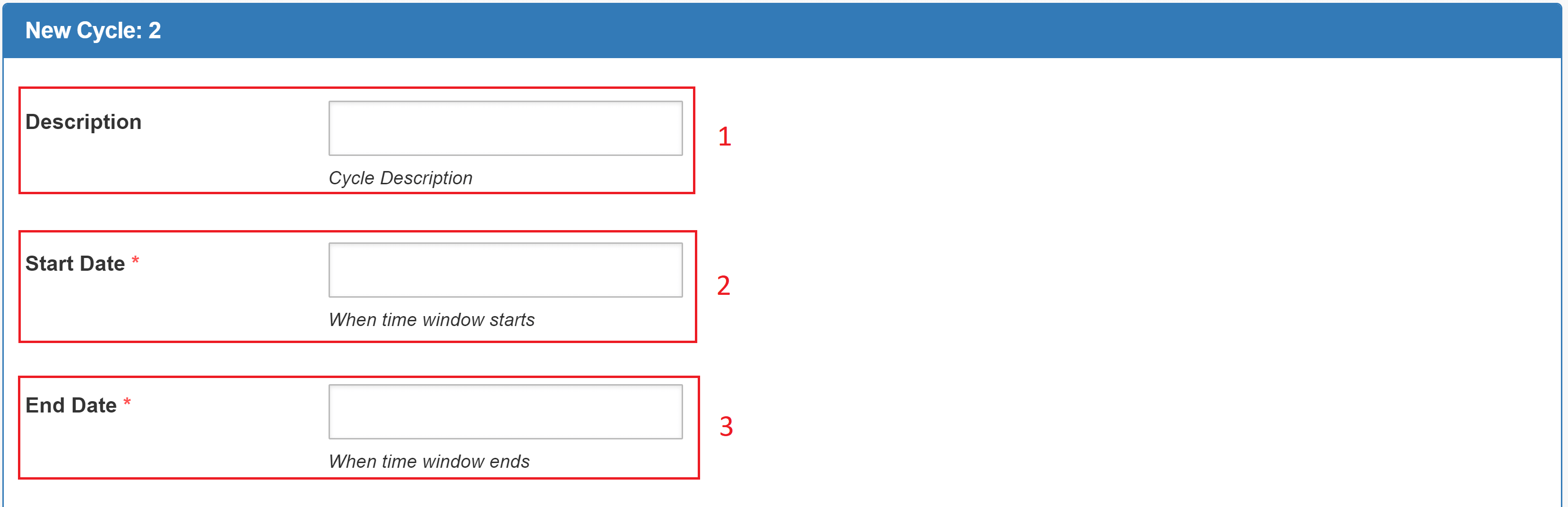 - Description (Optional): Enter a description of the cycle to help identify it.