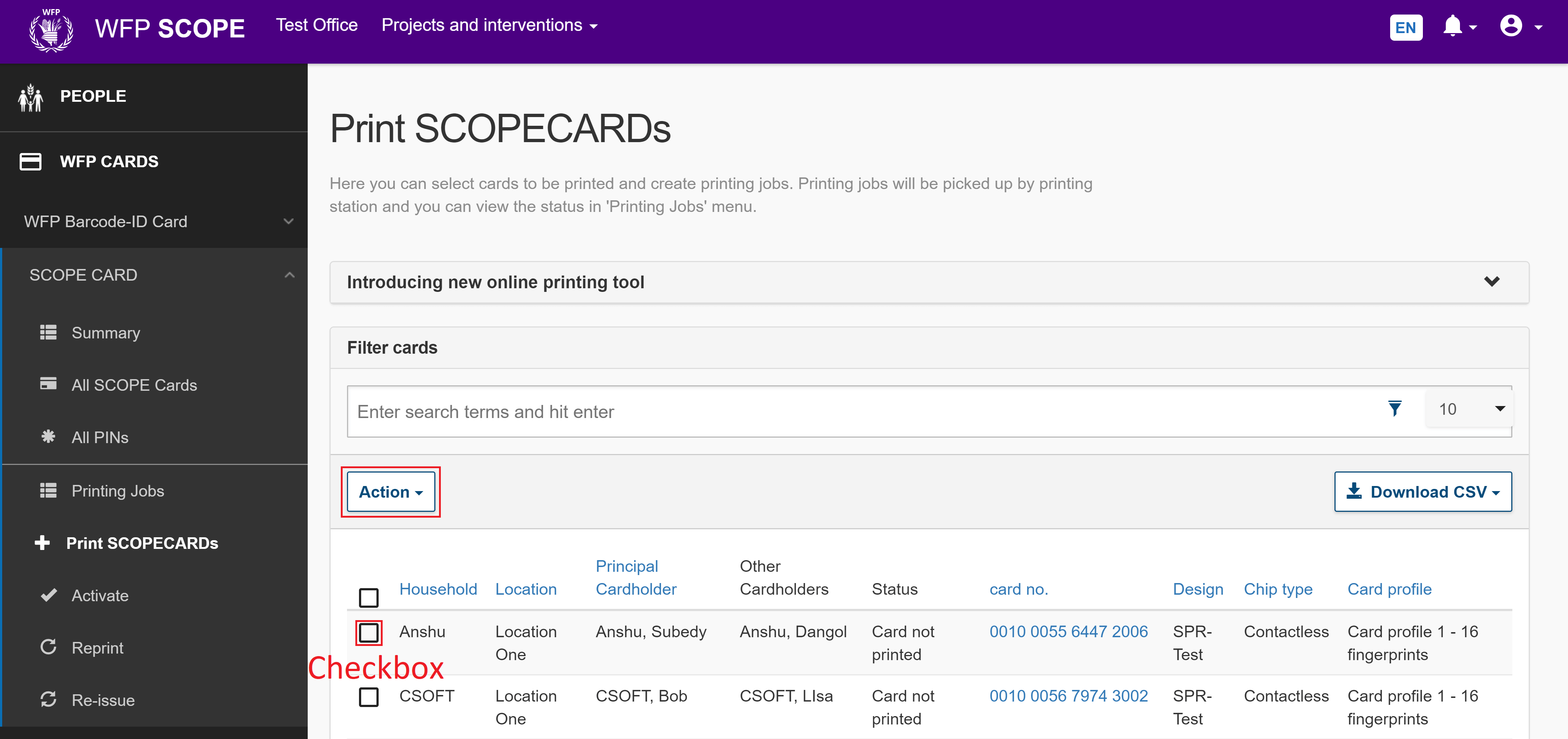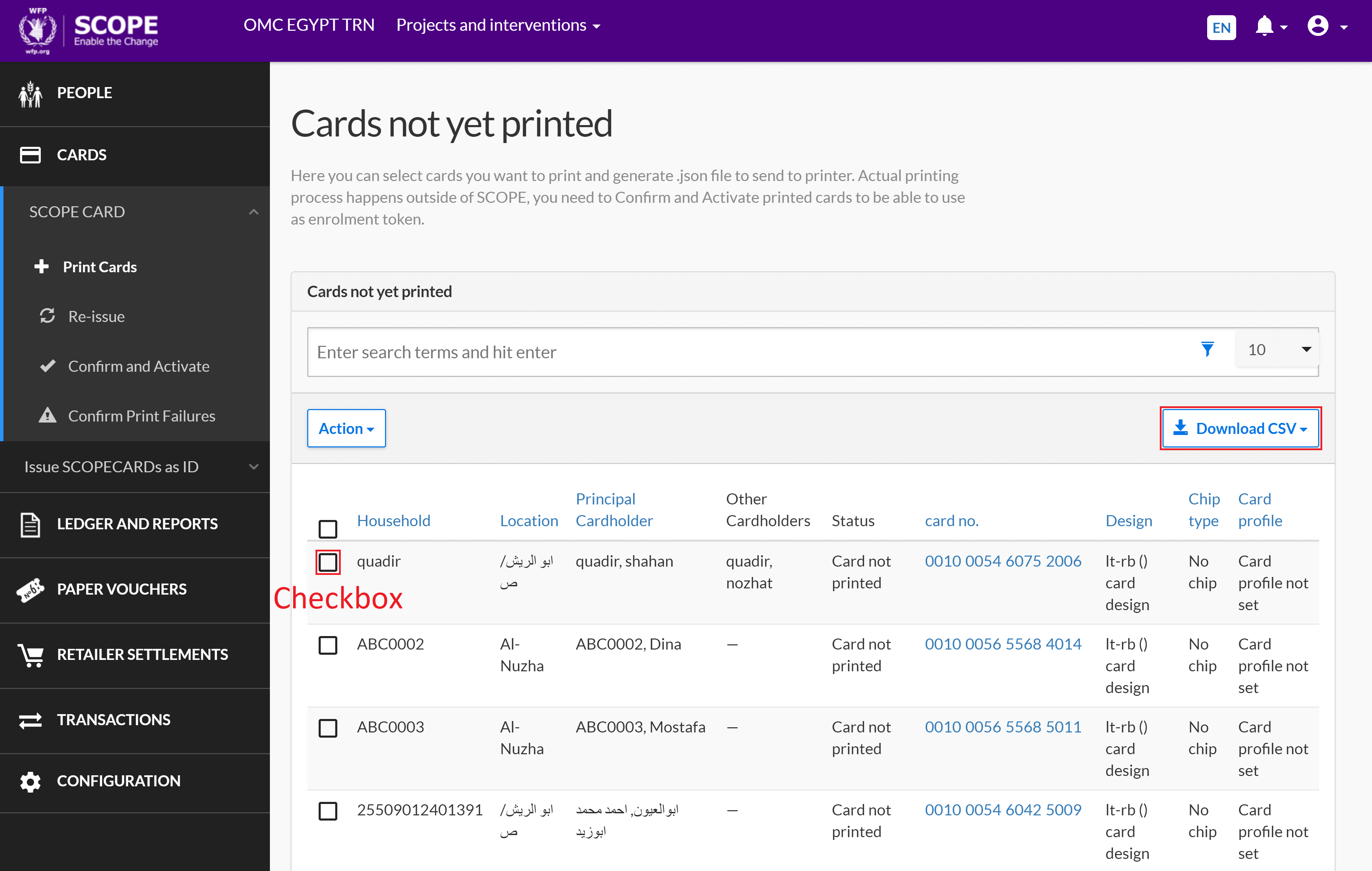 Ensure that beneficiaries have been registered in SCOPE and the delivery mechanism has been set up before printing SCOPECARDs.