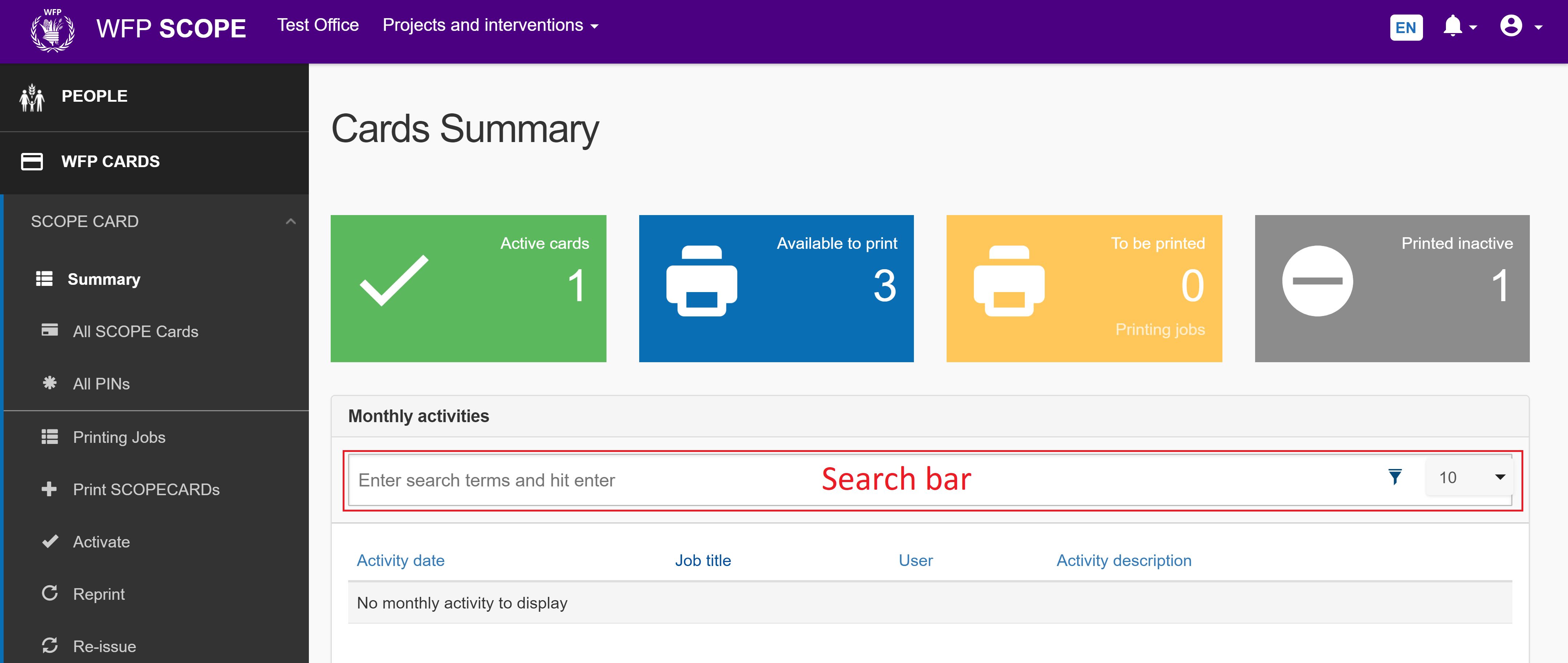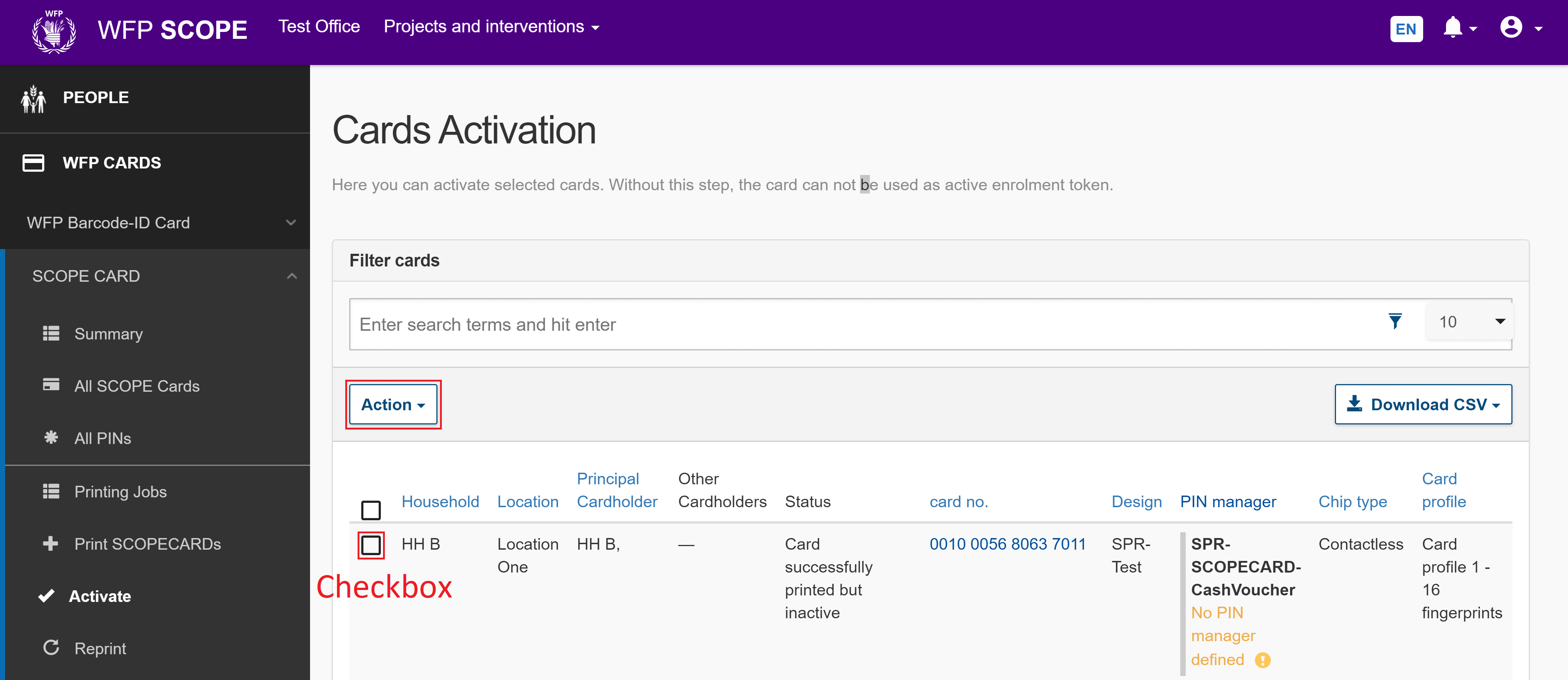 Activate printed SCOPECARDs so they can be actively used in a distribution cycle. If SCOPECARDs are not activated, they cannot be used as an enrolment token.