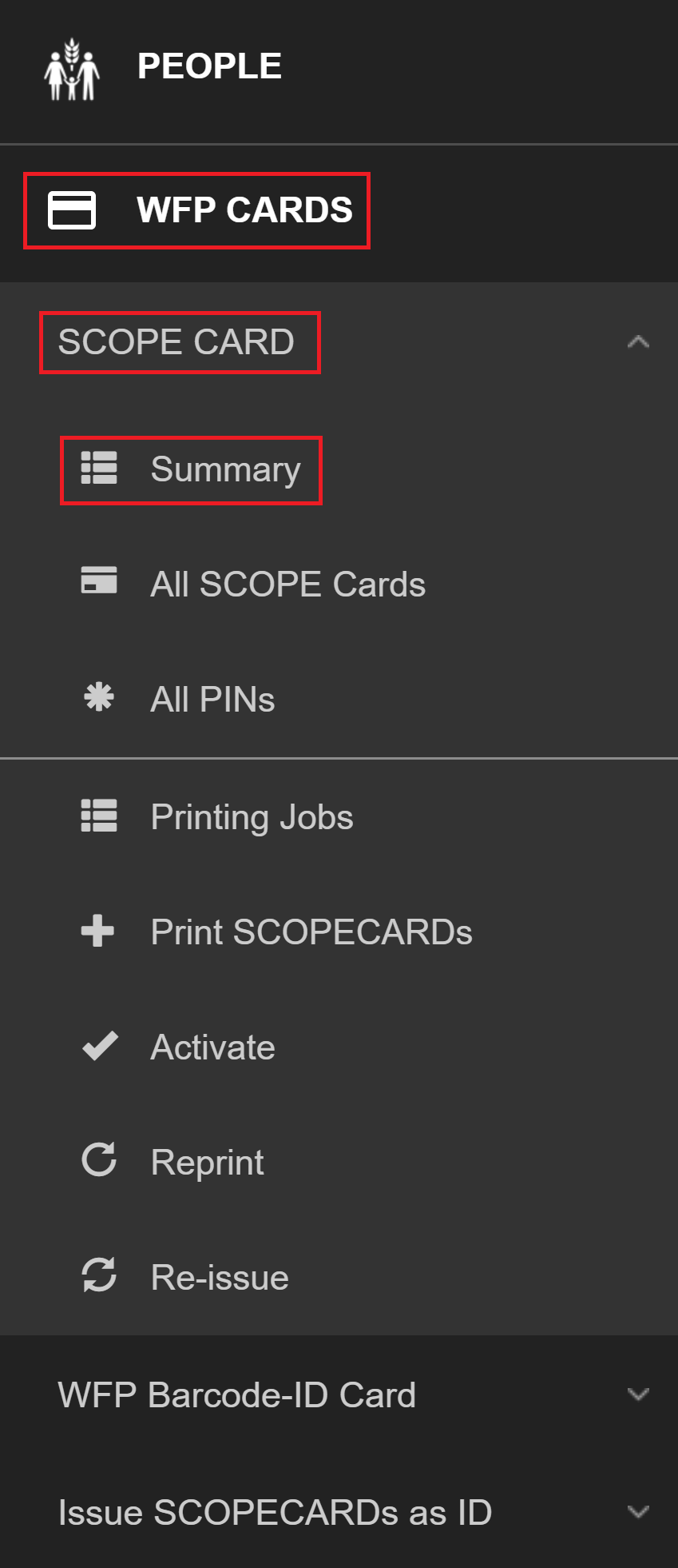 Instructions for managing WFP barcode-ID cards